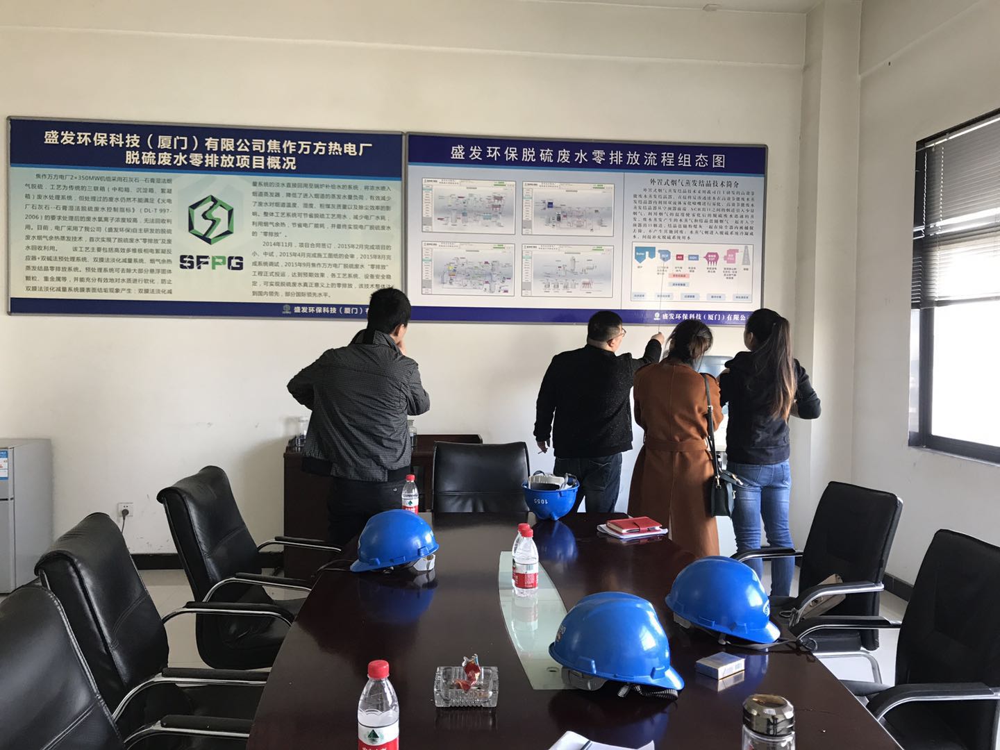2018年3月16日,陜西環(huán)保產(chǎn)業(yè) 陜西秦邦環(huán)??萍脊煞萦邢薰纠罱?jīng)理一行到焦作項(xiàng)目部考察參觀,對(duì)脫硫廢水著重了解,市場(chǎng)總監(jiān)戚威與其進(jìn)行交流。